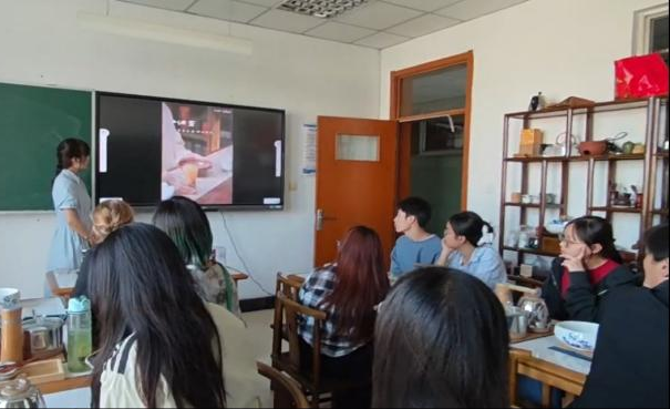 茶韵千年,文化共赏活动伊始,鲁婷婷同学以生动的语言向留学生们介绍了中国茶文化的悠久历史。从宋代风雅的点茶技艺,到现代六大茶类(绿茶、红茶、青茶、白茶、黄茶、黑茶)的区分,留学生们听得津津有味,不时提问互动。通过讲解,大家不仅了解了茶叶的分类与特点,更感受到茶文化背后蕴含的“和敬清寂”精神,以及中国人“以茶会友”的待客之道。