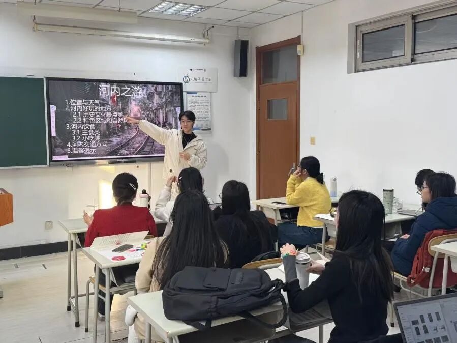 在互动环节中,现场气氛热烈,师生们踊跃提问,涉及越南旅游路线规划、美食推荐等多个方面,阮坚强均耐心细致地一一作答。讲座圆满落幕,文化的纽带仍在延续。从地理气候到建筑风光,从饮食特色到出行建议,阮坚强的精彩分享,使越南河内文化的生动形象深入人心,定格了这场跨越国界的文化交流瞬间。